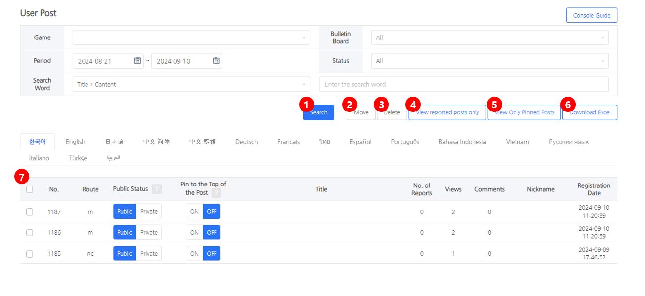 1. 您可以按板塊和語言查看用戶註冊的帖子。