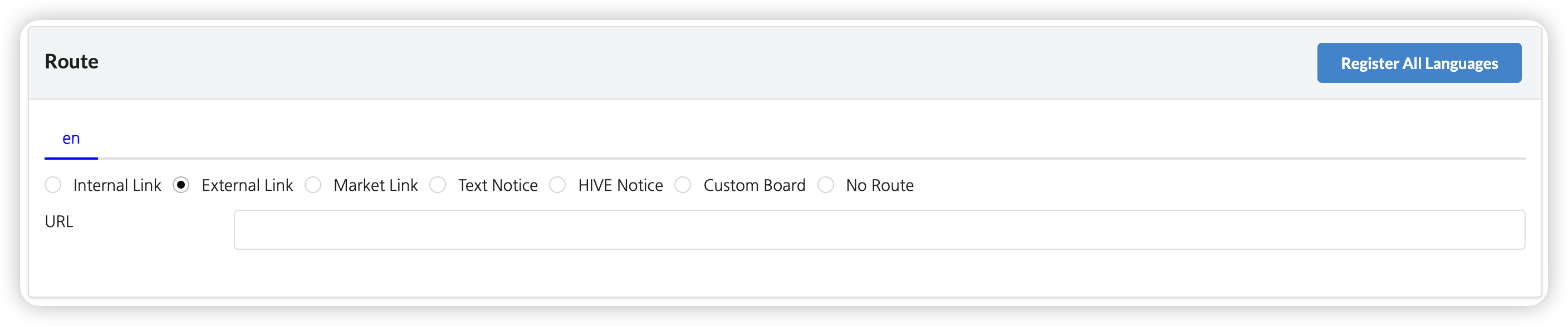 輸入點擊圖像橫幅時要移動到的路由。您可以根據語言選擇不同類型的路由,並且只能為註冊橫幅的語言設置路由。如果您使用網頁橫幅,即使輸入路由也無法正常工作。