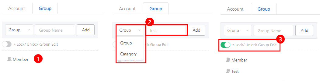 ③ 將「鎖定/解鎖群組編輯」切換按鈕設置為開啟,然後編輯該群組。編輯完成後,將切換按鈕設置為關閉以保存更改。