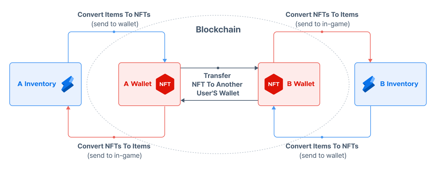 - 將遊戲物品轉換為區塊鏈NFT並發送到用戶的錢包