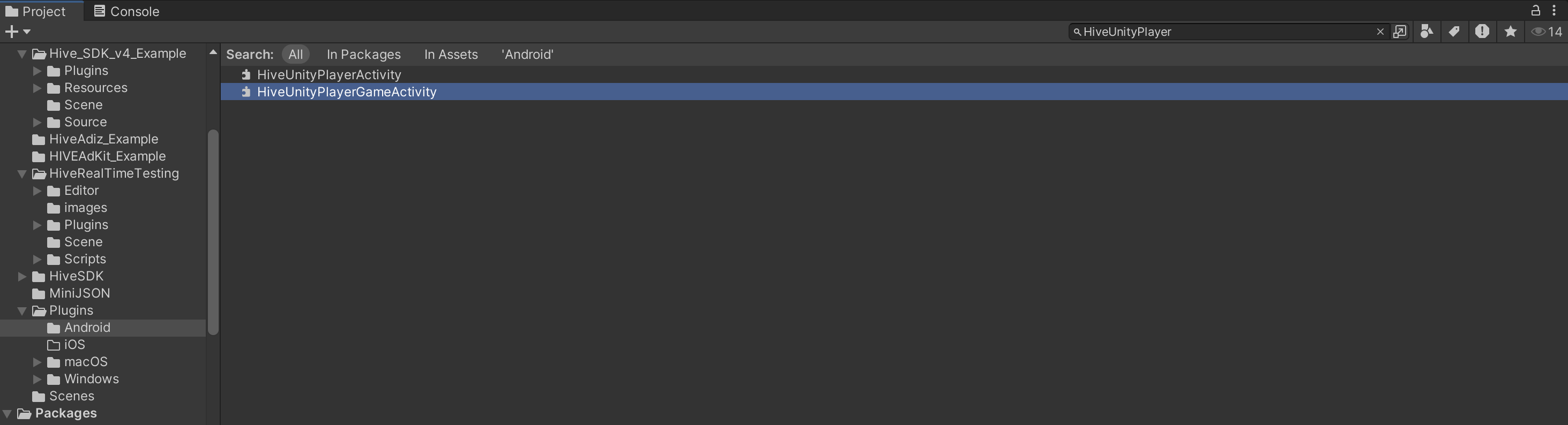 如果您使用的 Unity 版本低於 2023,請刪除 HiveUnityPlayerGameActivity 文件。