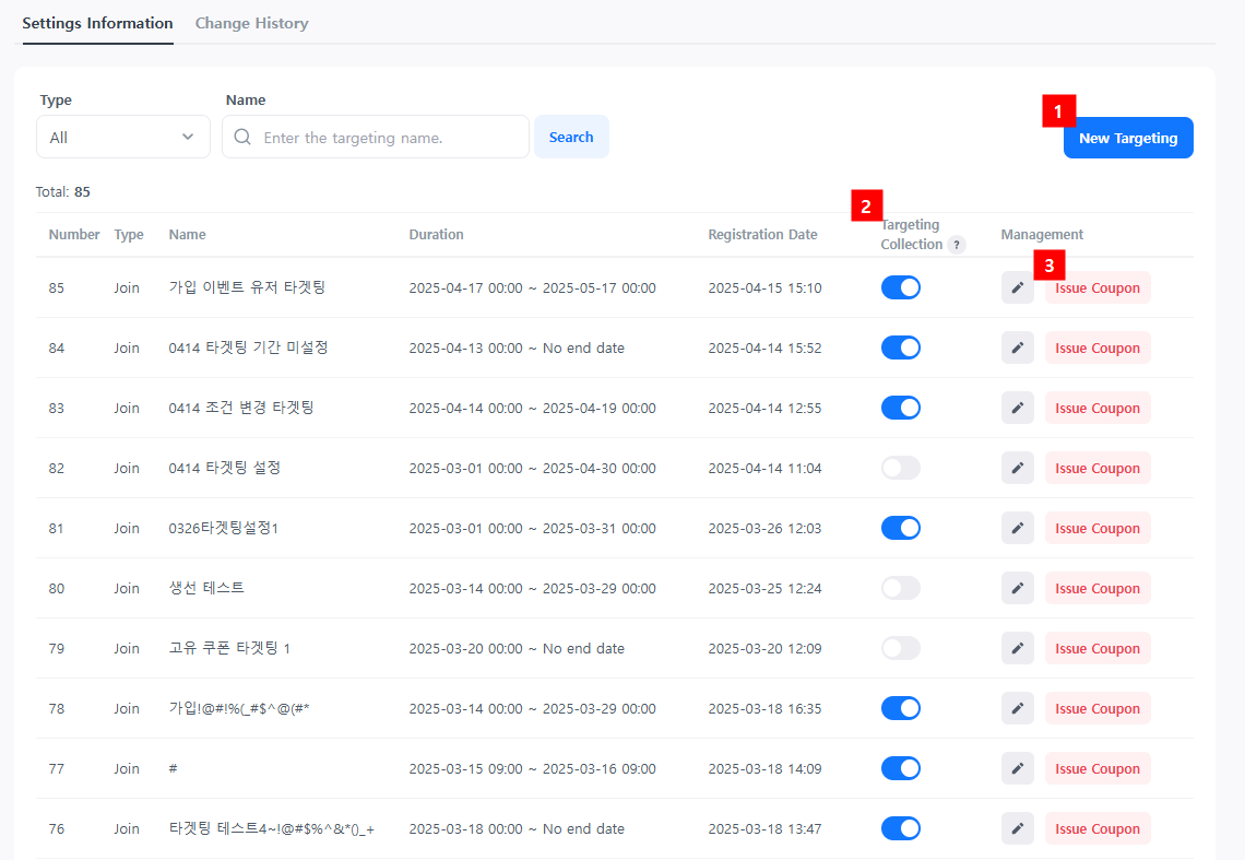 - 當在發行優惠券時設置目標時,只有符合目標條件的用戶才能使用該優惠券。