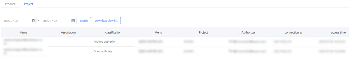查看帳戶對產品頁面訪問的授權和撤銷歷史。