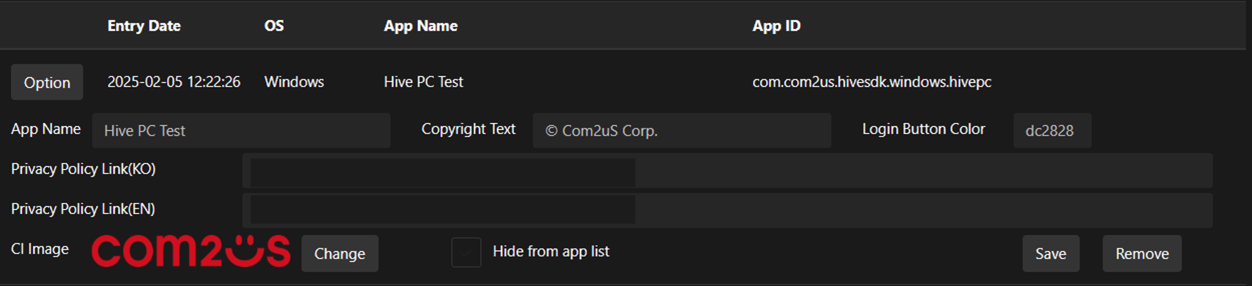 - [應用程式管理] 菜單中必須註冊使用的應用程式作業系統(Android、iOS、Windows)、應用程式 ID(包 ID 或套件名稱)、應用程式名稱。註冊後仍然可以修改應用程式名稱。