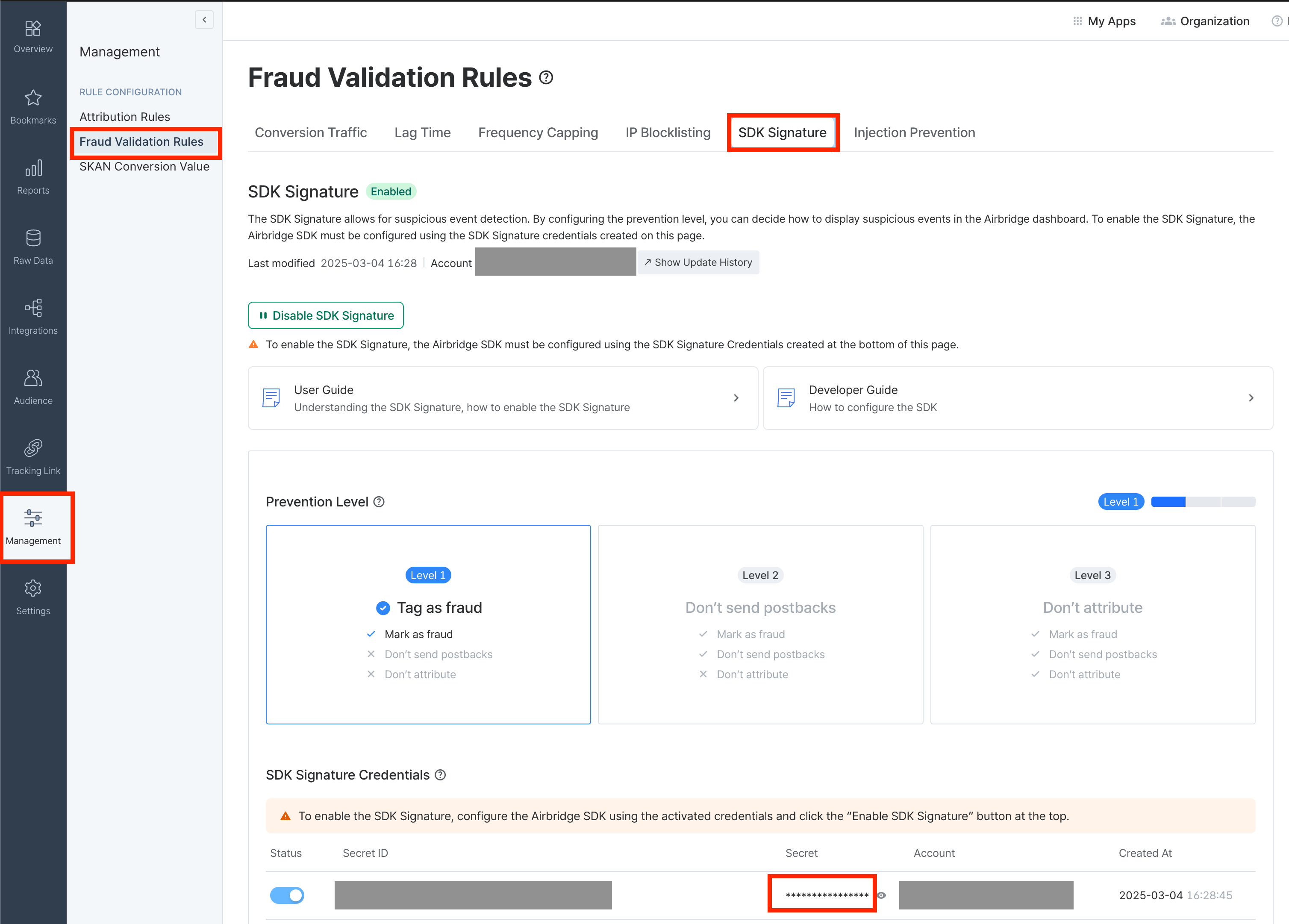 輸入從[b]Airbridge控制台/b獲得的秘密值。
