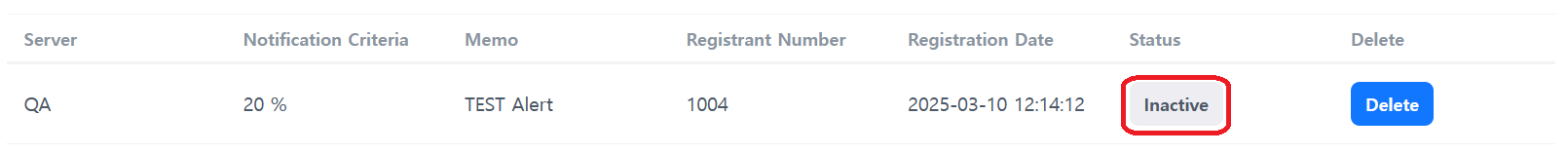 - 狀態 : 註冊為基本非啟用狀態,必須在通知設置列表中更改為啟用才能正常運作。