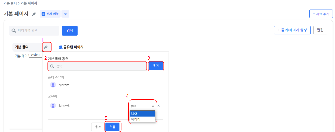 - 編輯者:包括查看權限,並允許用戶在資料夾中添加新頁面、重命名資料夾以及授予其他用戶權限。