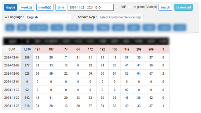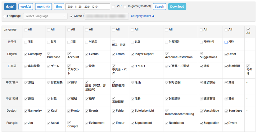 您可以根據語言和遊戲按類別查看收到的查詢量。