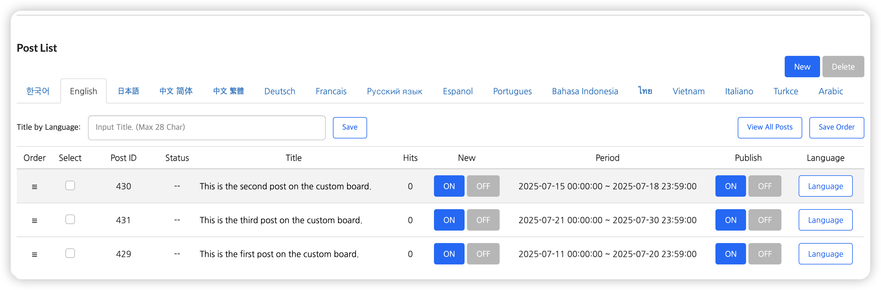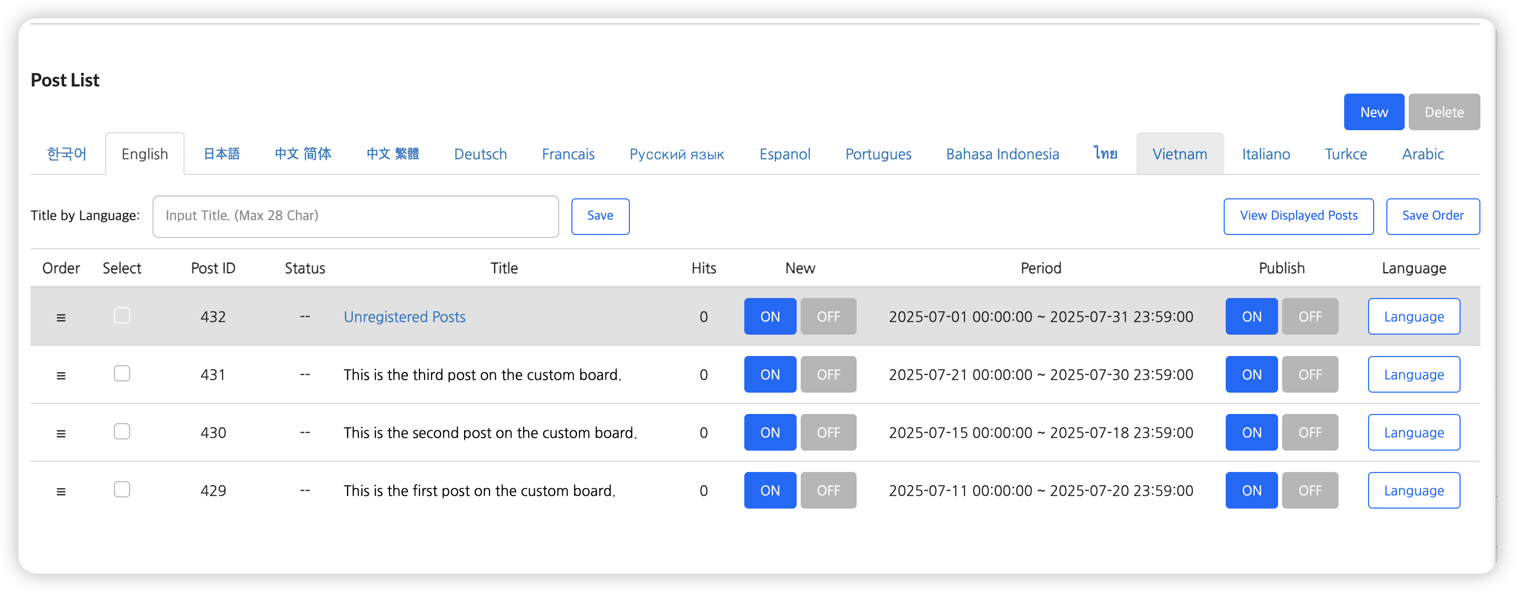 - 當設為 ON 時,New 圖示會在帖子列表中顯示。