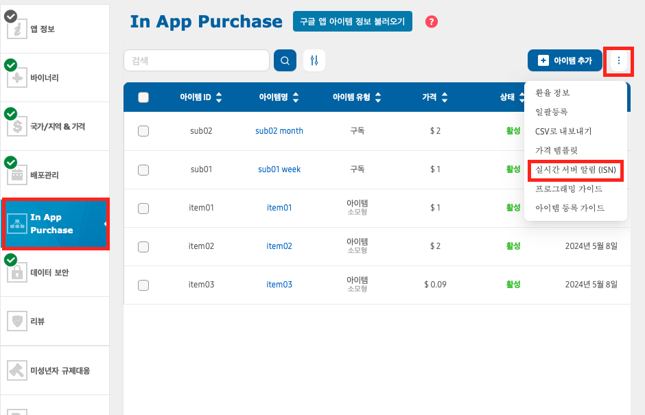 - Galaxy商店控制台设置 : 因为Galaxy商店不提供单独的取消/退款API,您必须在Galaxy商店控制台中手动注册一个URL,以便在发生取消或退款时接收通知。请按照以下步骤在Galaxy商店中注册Hive IAP服务器URL。