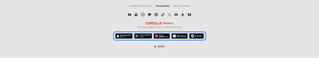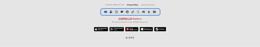 登记将在社区与网页商店中共同显示的项目或设置相关功能。 底部页脚显示的SNS图标及其他设置项可按网站语言分别登记