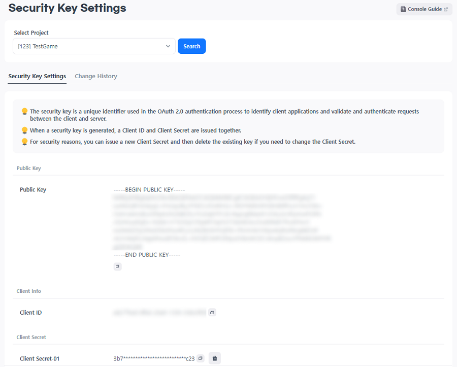 - 您只能创建一个公钥和一个客户端ID。创建后,无法更改。
