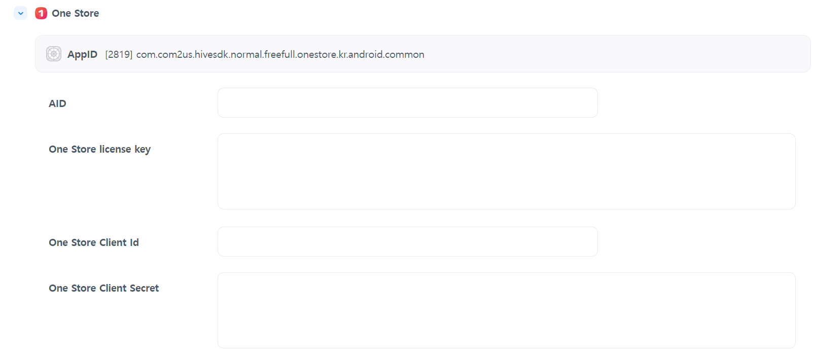 One Store 许可证密钥从 Hive SDK v4.11.0 及更高版本开始支持 One Store 的应用内购买密钥。