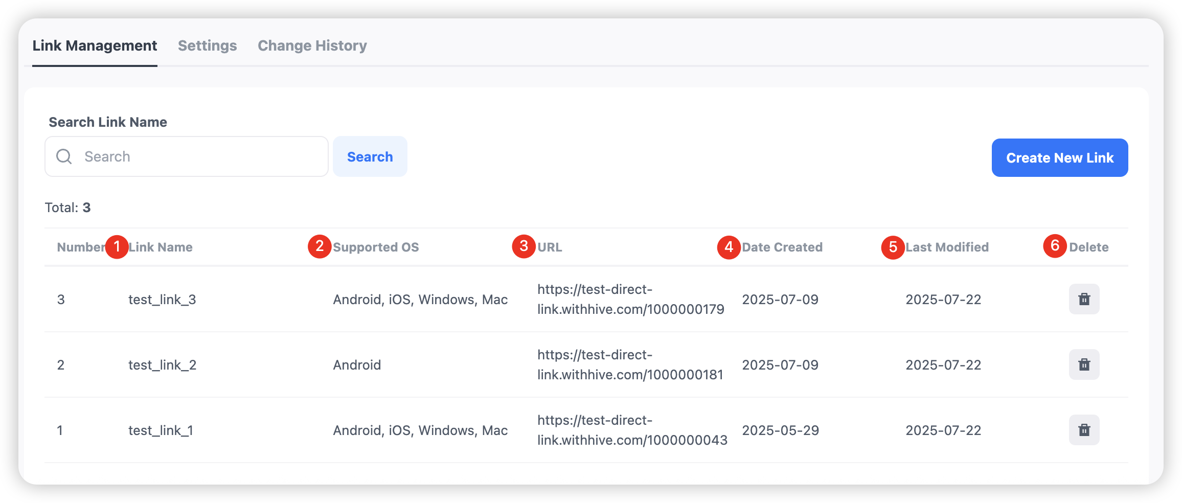 前往控制台 > 推广 > 用户参与 > 直接链接管理,并打开链接管理选项卡。