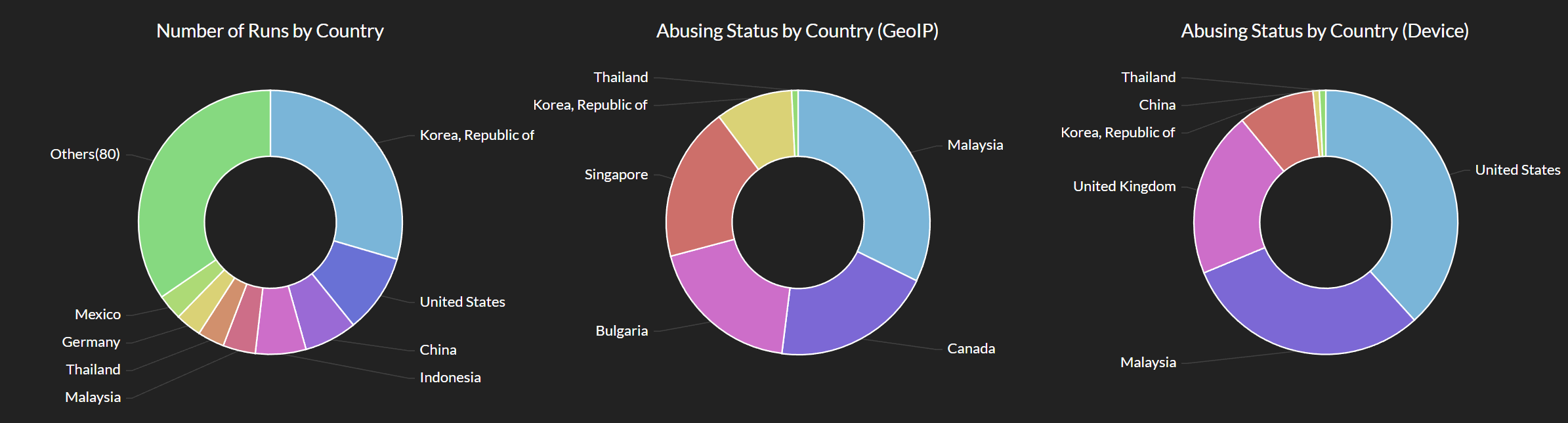- 您可以查看运行大量游戏的国家、尝试滥用的高发国家、操作系统版本、网络环境数据等各种统计信息。