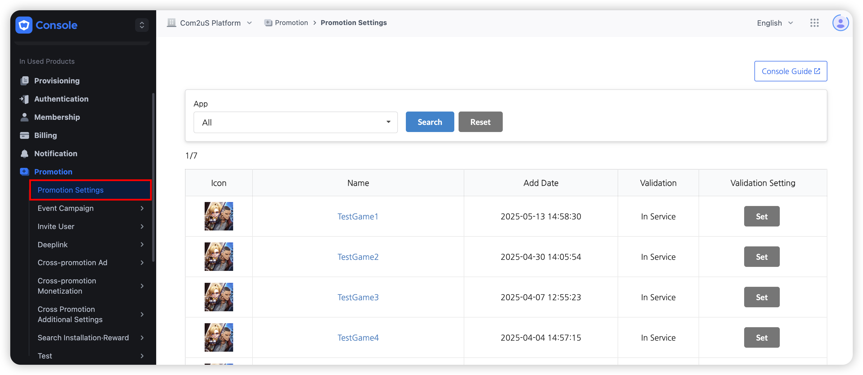 搜索您想要更改验证设置的游戏,并点击该游戏的设置按钮。