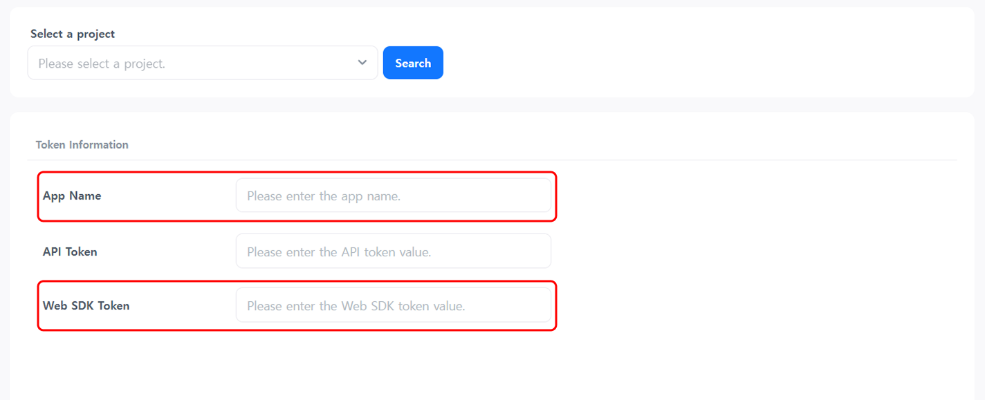 菜单 : 营销导览 > 设置Airbridge > 选择项目 > 输入应用名称,Web SDK令牌
