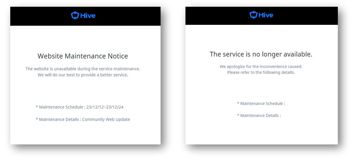 可以更改各语言版本网页商店的服务状态。 - 描述和备注列中的文本可以自由修改。 - 检查页面和退出页面之间唯一的区别是主要文本,其他功能相同。 - 正常:更改为用户可以访问各网站的正常状态。 - 检查页面:将显示网站维护通知页面。此外,首次创建网站时也会设置为维护状态。 - 结束页面:显示为服务终止时可以使用的页面。