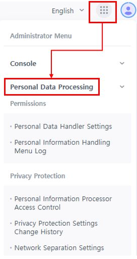 权限管理者(所有者,管理员)也充当个人信息处理管理者,可以管理数据处理者设置和访问个人数据处理菜单。